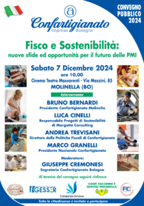 Sabato 7 Dicembre partecipa al convegno “Fisco e Sostenibilità: nuove sfide ed opportunità per le PMI” presso il Cinema Teatro Massarenti