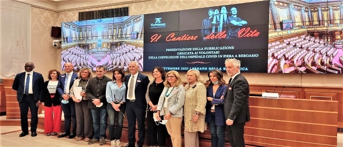 Oggi a Palazzo Madama si è svolta la presentazione della pubblicazione ‘Il Cantiere della Vita‘ realizzata da Confartigianato Bergamo e dedicata ai volontari della costruzione dell’Ospedale Covid in Fiera a Bergamo, strumento anche per una nuova iniziativa solidale promossa dall’Associazione per borse di studio istituite dalla Fondazione Aiuti per la Ricerca sulle Malattie Rare A.R.M.R. destinata al progetto ORIGIN dell’Istituto di Ricerche Farmacologiche Mario Negri.
