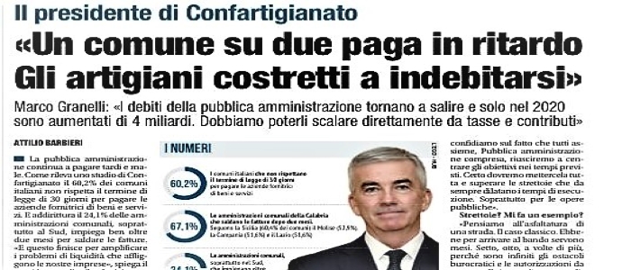 DEBITI PA – I media rilanciano l’allarme di Confartigianato. Intervista al Presidente Granelli su Libero