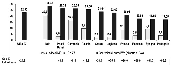 Extracosto per differenza di prezzo Italia-UE 27 dell’energia elettrica per MPI
