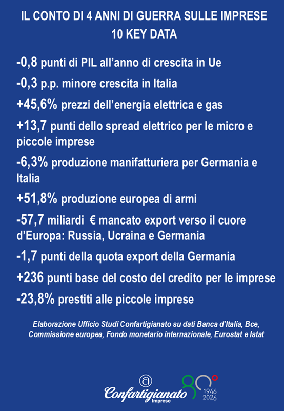 L’articolo Il conto di quattro anni di guerra per made in Italy, costi dell’energia e del credito proviene da Confartigianato Imprese.