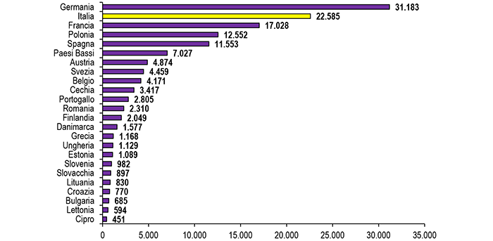 L’import del nostro Paese arriva per il 92,8% da fornitori in UE ed i primi 3 paesi fornitori sono Polonia (638 mln di euro, quota di 45,9%), Romania (269 milioni di euro, il 19,3%) e Germania (163 milioni di euro, l’11,7%).